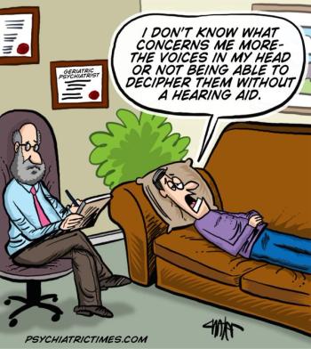 What is more concerning? The voices in his head or not being able to decipher them without a hearing aid?