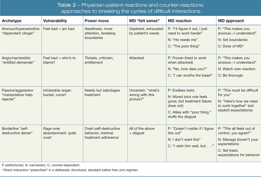 Table 2 from: Sazima G. The “Hateful Patient” Revisited: A Transactional View of Difficult Physician-Patient Relationships. Psychiatric Times. June 19, 2015.