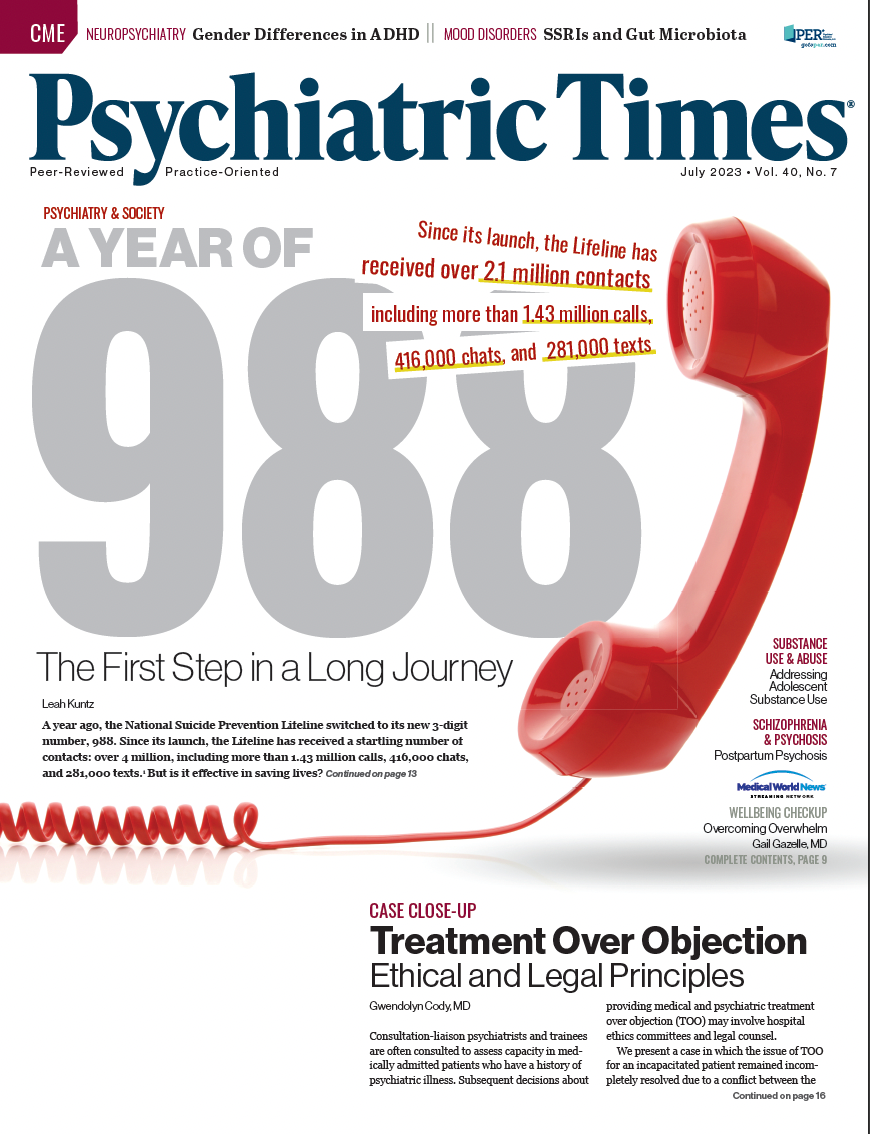 In a Psychiatric Times online poll, 70% of responders said they had discussed 988 with their patients.15 Have you discussed 988 with patients or their families? Tell us about your experiences via PTEditor@mmhgroup.com.