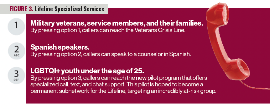 The Lifeline also now offers specialized services for various populations (Figure 3).