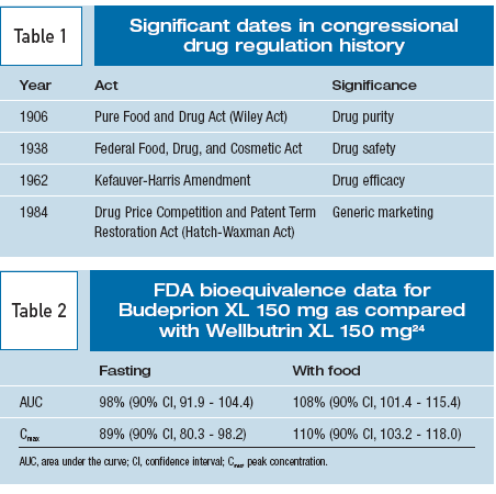24. Center for Drug Evaluation and Research. Review of therapeutic equivalence: generic bupropion XL 300 mg and Wellbutrin XL 300 mg. U.S. Food and Drug Administration. http://www.fda.gov/cder/drug/infopage/ bupropion/TE_review.htm. Published April 16, 2008. Accessed March 11, 2009.