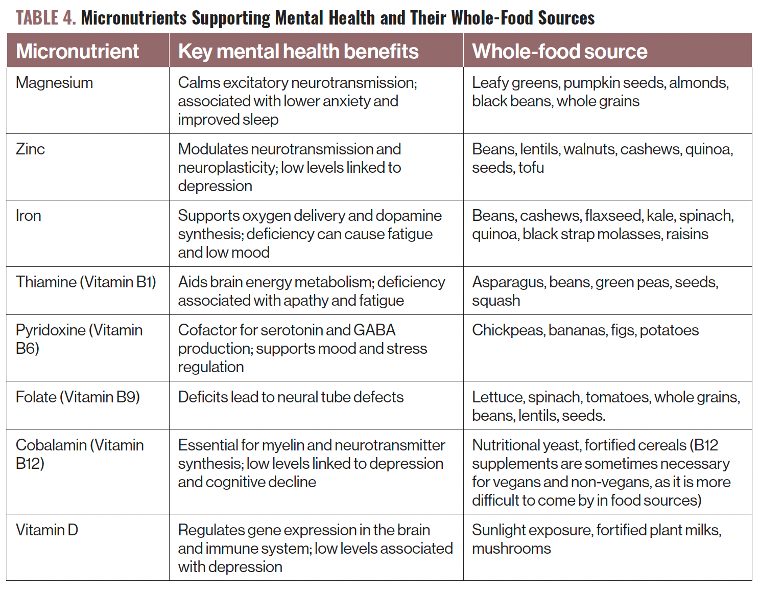 If nutritional deficiencies are identified, encouraging patients to add a variety of colorful foods to their plate (“Eat the rainbow”)—through vegetables, fruits, legumes, nuts, and seeds—offers a practical and empowering path toward improved mood, energy, and cognitive health. Tables