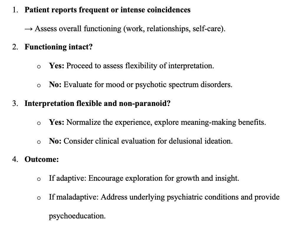 Clinicians can differentiate by assessing overall functioning, flexibility of interpretation, and whether the experiences foster curiosity and growth or paranoia and impairment. When coincidences inspire insight and coherence, they are often signs of adaptation rather than illness.
